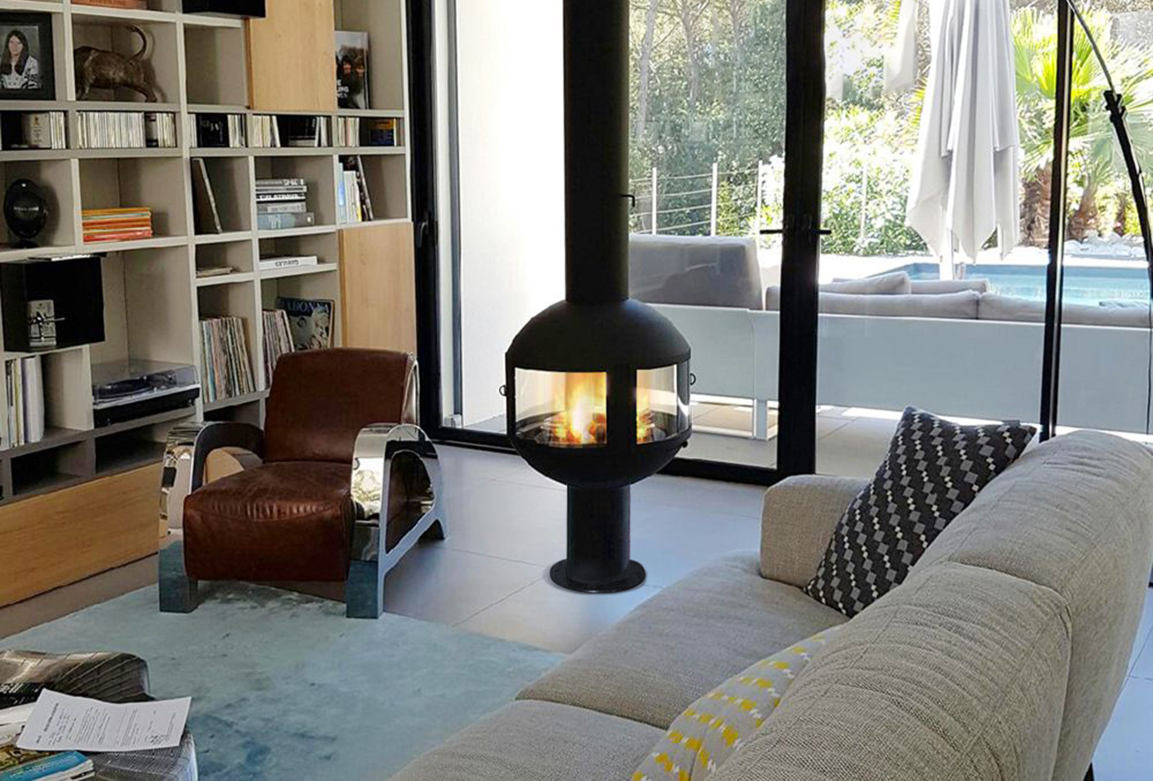 Subtilement griffé, fixe sur pied, ce foyer se sait ouvert à tous les regards.